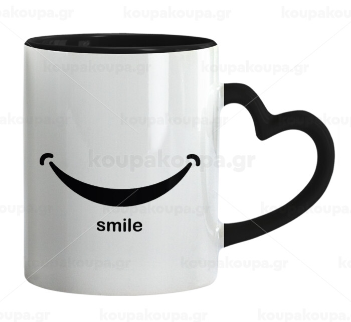 Smile!!!, Κούπα καρδιά χερούλι μαύρη, κεραμική, 330ml