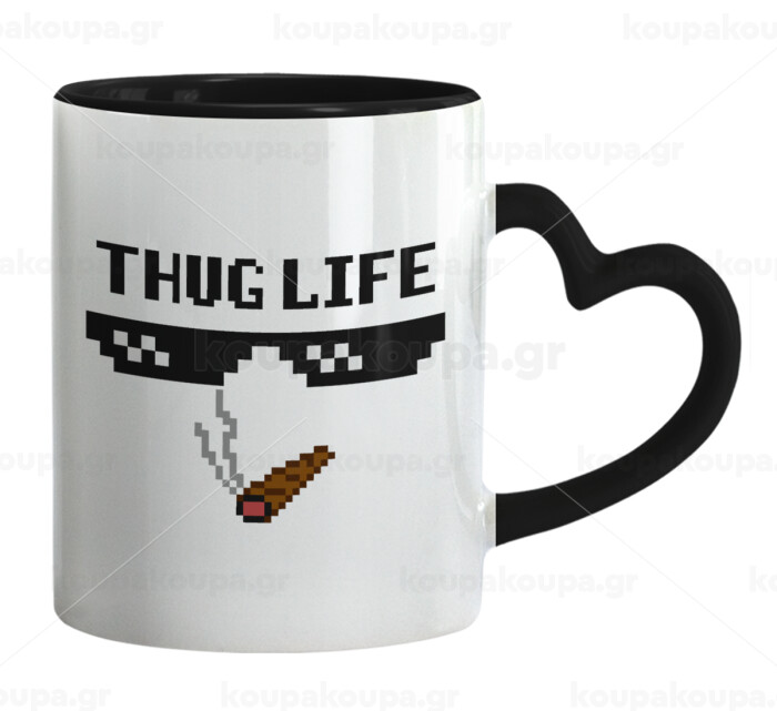 thug life, Κούπα καρδιά χερούλι μαύρη, κεραμική, 330ml
