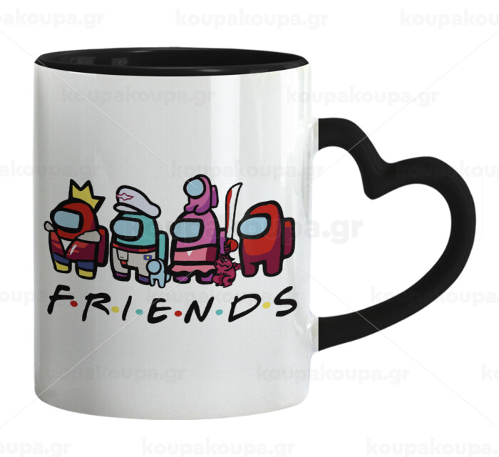Among US Friends, Κούπα καρδιά χερούλι μαύρη, κεραμική, 330ml