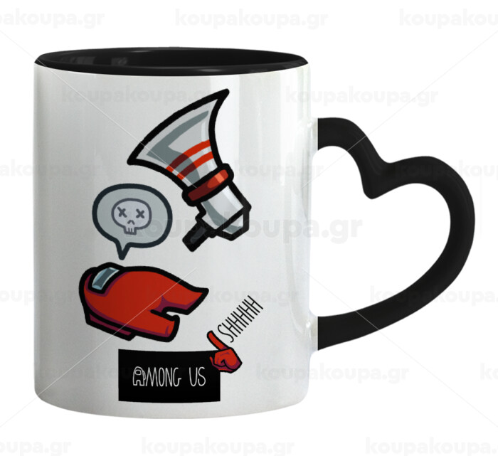 Among US Shhhh!!!, Κούπα καρδιά χερούλι μαύρη, κεραμική, 330ml