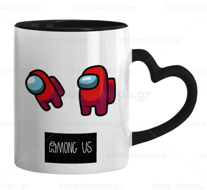 Among US, Κούπα καρδιά χερούλι μαύρη, κεραμική, 330ml