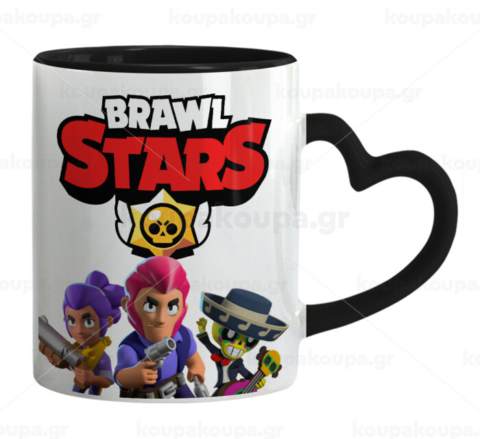 Brawl Stars Blue, Κούπα καρδιά χερούλι μαύρη, κεραμική, 330ml