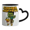 Chicken Jockey, Κούπα καρδιά χερούλι μαύρη, κεραμική, 330ml