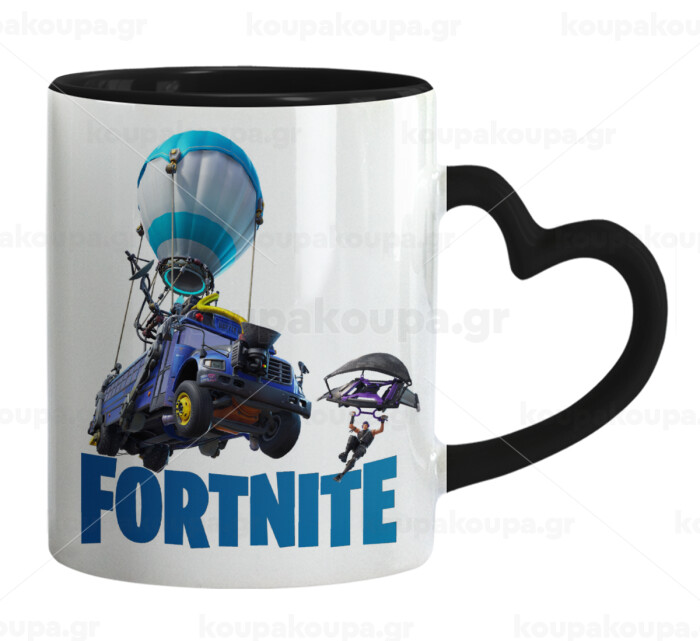 Fortnite Bus, Κούπα καρδιά χερούλι μαύρη, κεραμική, 330ml
