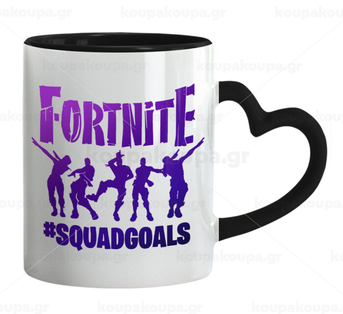 Fortnite #squadgoals, Κούπα καρδιά χερούλι μαύρη, κεραμική, 330ml