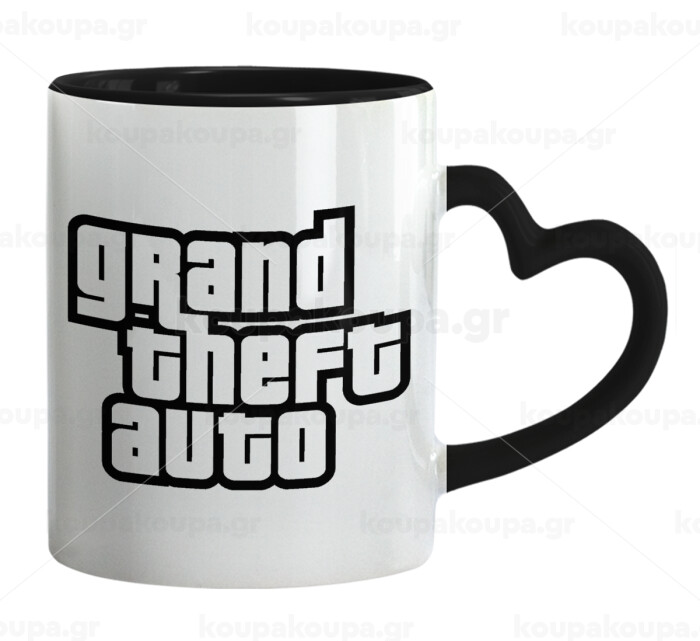 GTA (grand theft auto), Κούπα καρδιά χερούλι μαύρη, κεραμική, 330ml