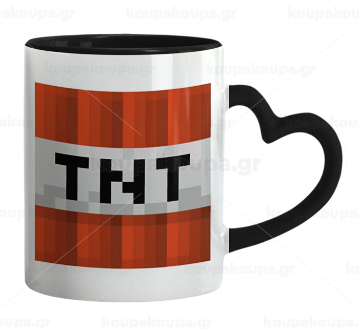 Minecraft TNT, Κούπα καρδιά χερούλι μαύρη, κεραμική, 330ml