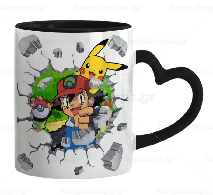 Pokemon brick, Κούπα καρδιά χερούλι μαύρη, κεραμική, 330ml