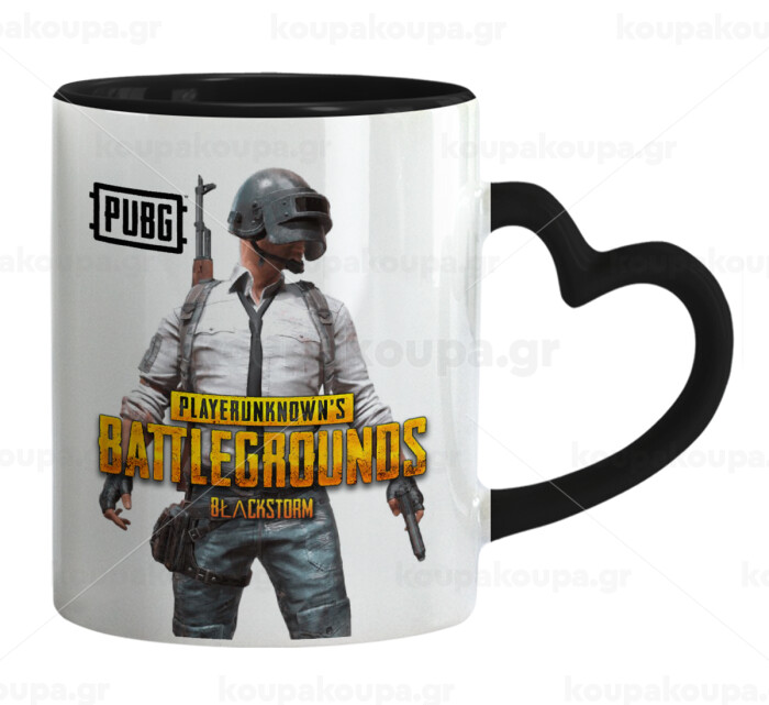 PUBG battleground royale, Κούπα καρδιά χερούλι μαύρη, κεραμική, 330ml