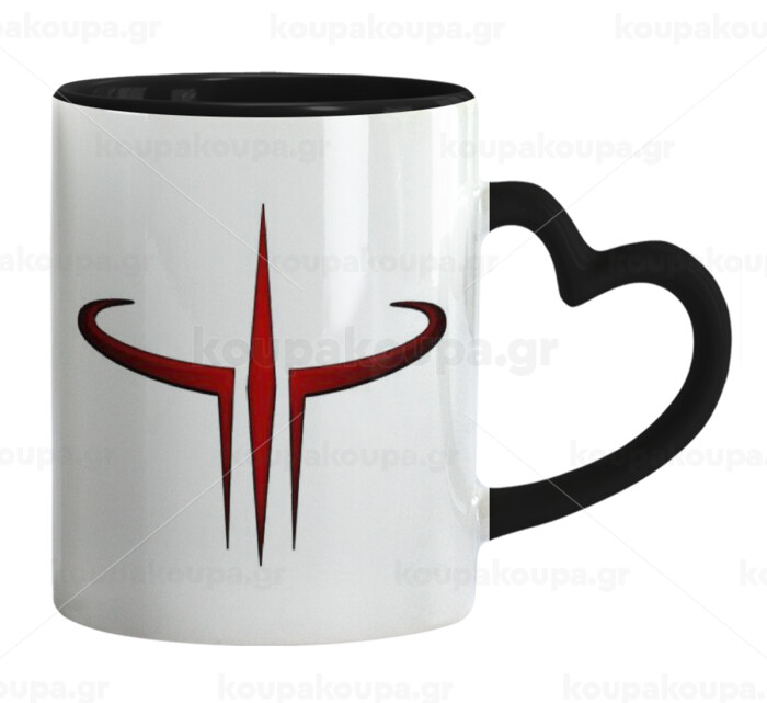 Quake 3 arena, Κούπα καρδιά χερούλι μαύρη, κεραμική, 330ml