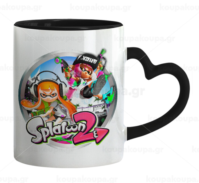 Splatoon 2, Κούπα καρδιά χερούλι μαύρη, κεραμική, 330ml
