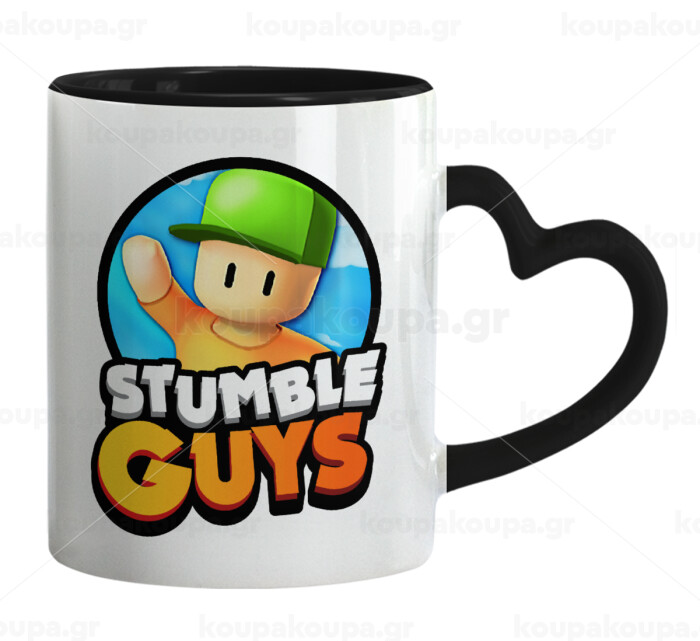 Stumble Guys, Κούπα καρδιά χερούλι μαύρη, κεραμική, 330ml
