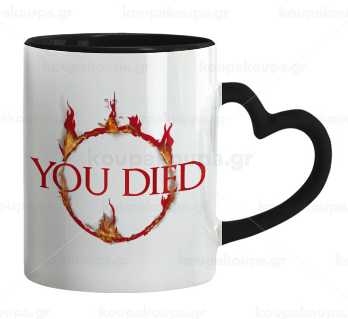 You Died | Dark Souls, Κούπα καρδιά χερούλι μαύρη, κεραμική, 330ml