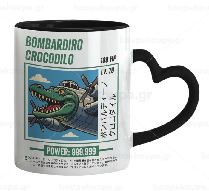 Bombardiro Crocodilo, Κούπα καρδιά χερούλι μαύρη, κεραμική, 330ml