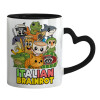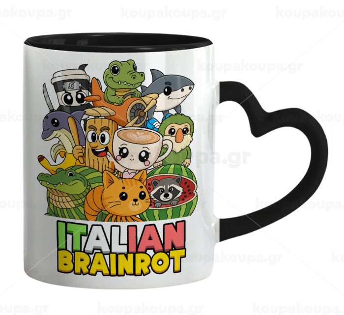 Italian Brainrot friends, Κούπα καρδιά χερούλι μαύρη, κεραμική, 330ml