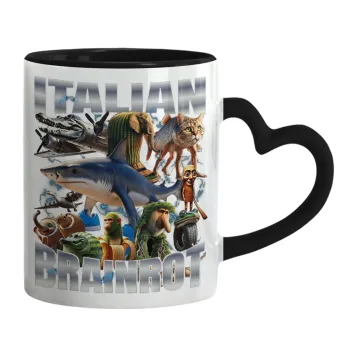 Italian Brainrot, Κούπα καρδιά χερούλι μαύρη, κεραμική, 330ml