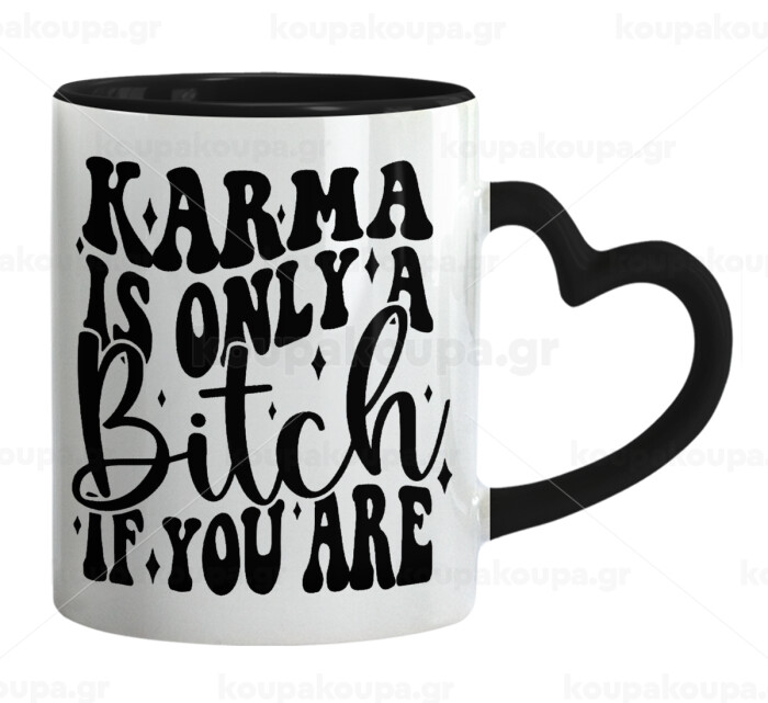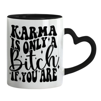 Karma is Only A Bitch if You Are, Κούπα καρδιά χερούλι μαύρη, κεραμική, 330ml