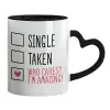 Single, Taken, Who cares i'm amazing, Κούπα καρδιά χερούλι μαύρη, κεραμική, 330ml