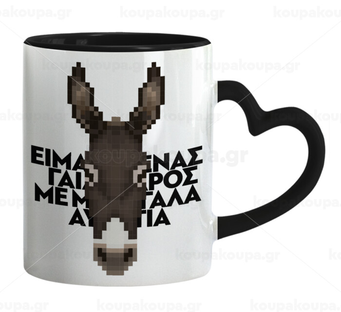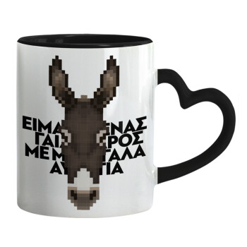 Είμαι ένας γάιδαρος με μεγάλα αυτιά., Κούπα καρδιά χερούλι μαύρη, κεραμική, 330ml