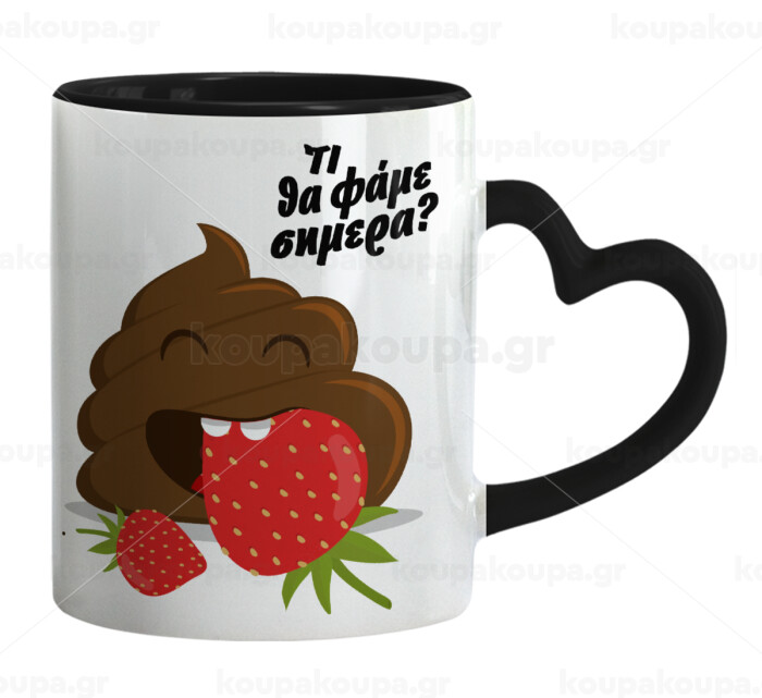 Τι θα φάμε σημερα???, Κούπα καρδιά χερούλι μαύρη, κεραμική, 330ml