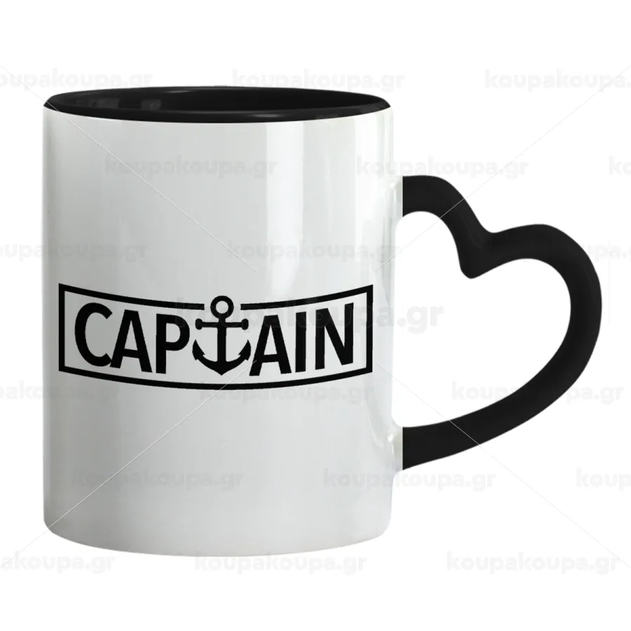 CAPTAIN, Κούπα καρδιά χερούλι μαύρη, κεραμική, 330ml