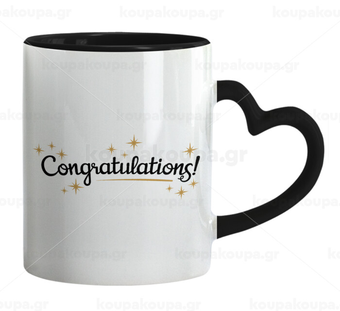 Congratulations, Κούπα καρδιά χερούλι μαύρη, κεραμική, 330ml