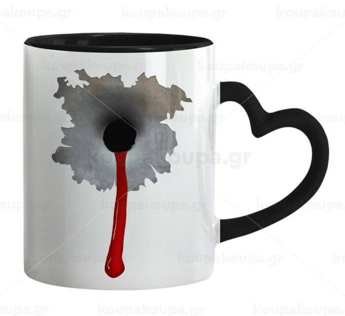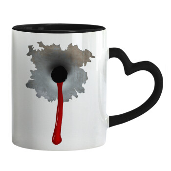 Bullet holes, Κούπα καρδιά χερούλι μαύρη, κεραμική, 330ml