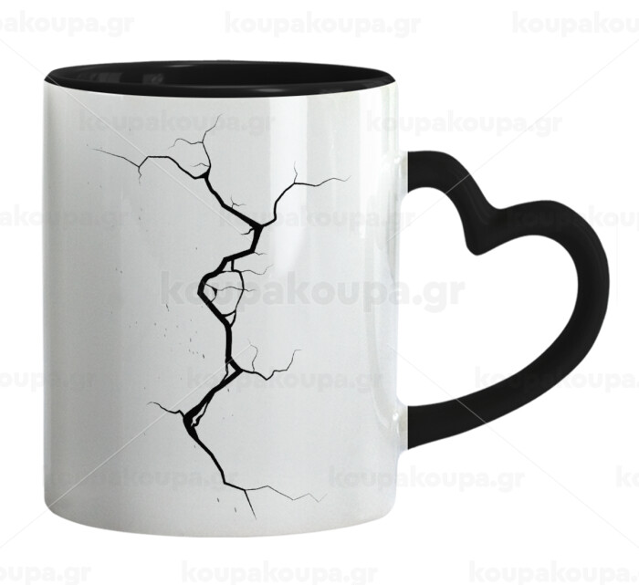 Cracked, Κούπα καρδιά χερούλι μαύρη, κεραμική, 330ml