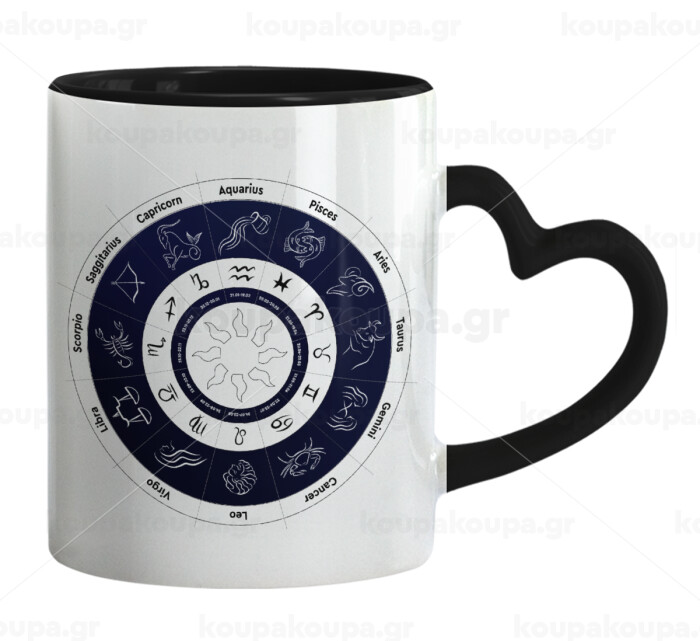 Ζωδιακός κύκλος, Κούπα καρδιά χερούλι μαύρη, κεραμική, 330ml