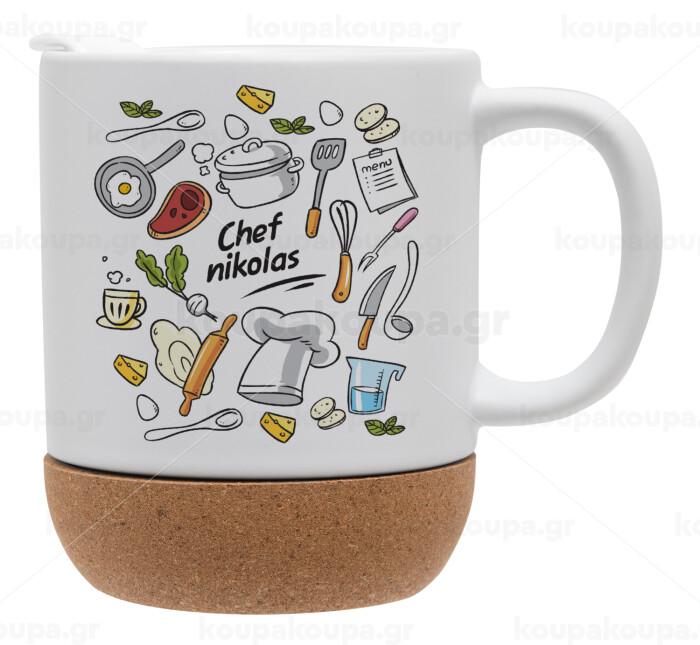 Chef με όνομα, Κούπα, κεραμική με βάση φελού και καπάκι (ΜΑΤ), 330ml