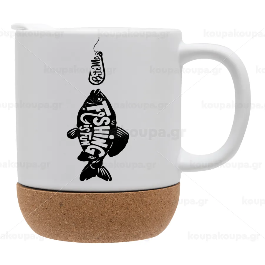 Fishing is fun, Κούπα, κεραμική με βάση φελού και καπάκι (ΜΑΤ), 330ml