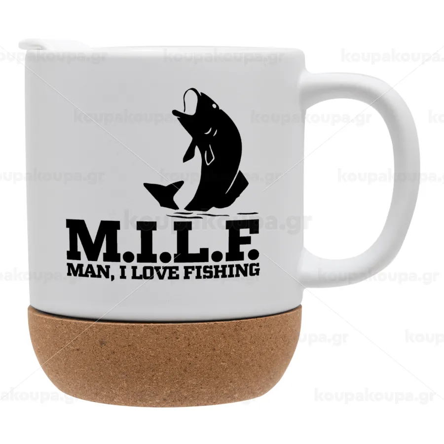 M.I.L.F. Mam i love fishing, Κούπα, κεραμική με βάση φελού και καπάκι (ΜΑΤ), 330ml