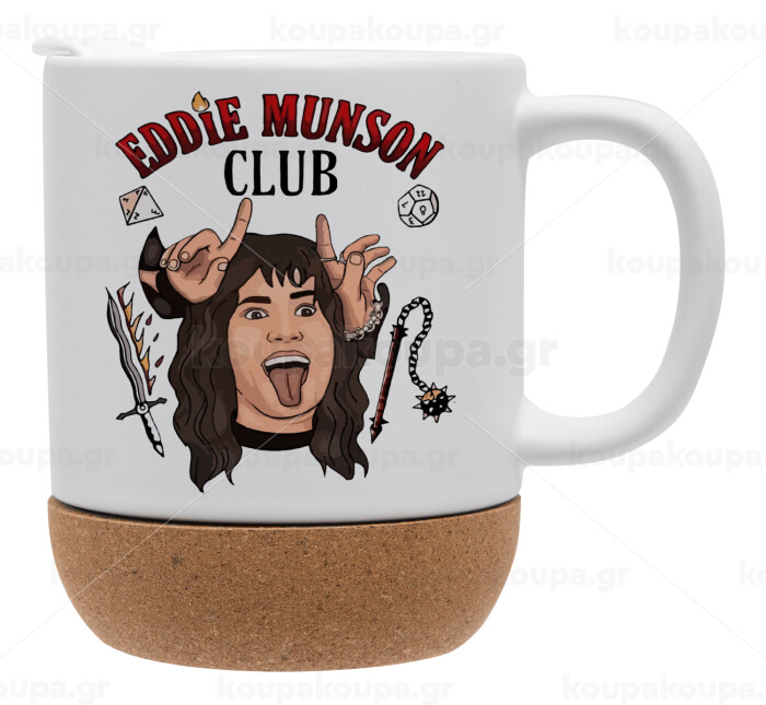 Eddie Munson, Hellfire CLub, Stranger Things, Κούπα, κεραμική με βάση φελού και καπάκι (ΜΑΤ), 330ml