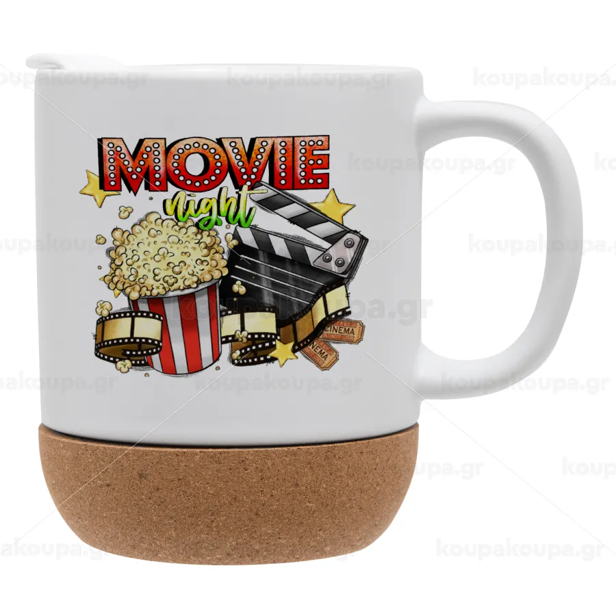 Movie night, Κούπα, κεραμική με βάση φελού και καπάκι (ΜΑΤ), 330ml