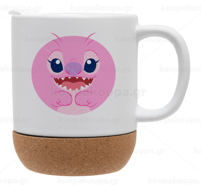 Lilo & Stitch Angel pink, Κούπα, κεραμική με βάση φελού και καπάκι (ΜΑΤ), 330ml