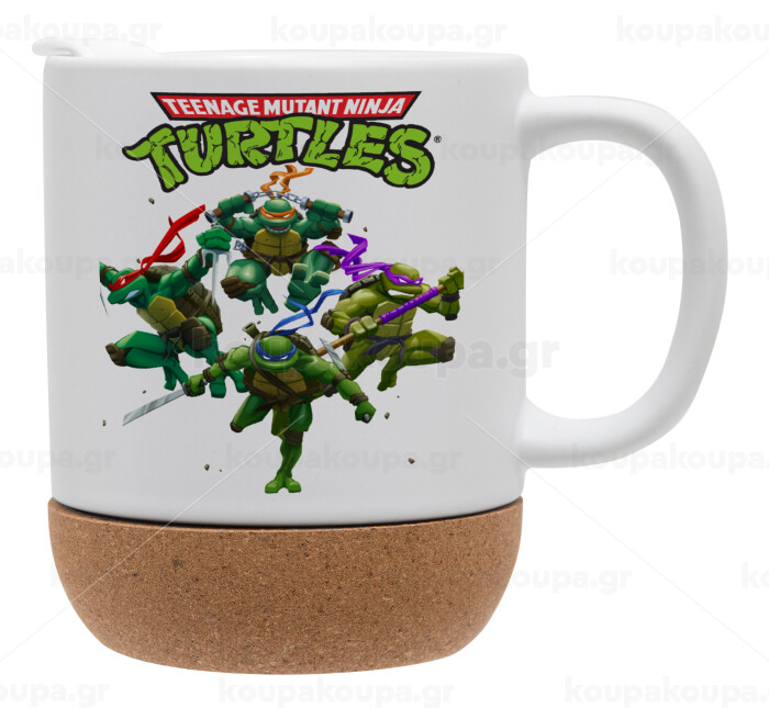 Ninja turtles, Κούπα, κεραμική με βάση φελού και καπάκι (ΜΑΤ), 330ml