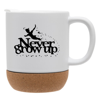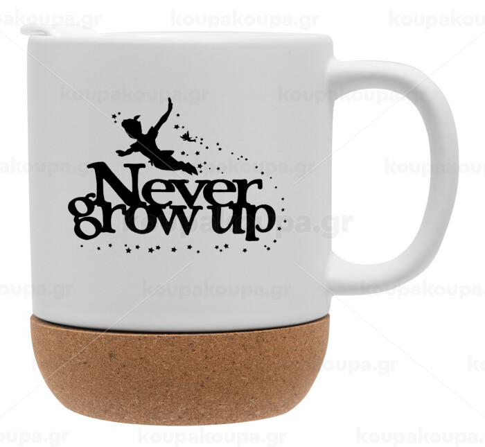 Peter pan, Never Grow UP, Κούπα, κεραμική με βάση φελού και καπάκι (ΜΑΤ), 330ml