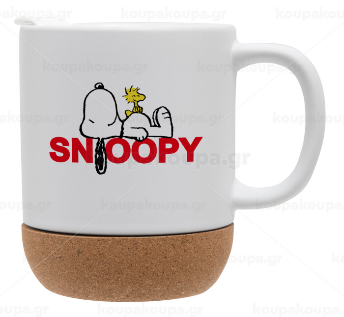 Snoopy sleep, Κούπα, κεραμική με βάση φελού και καπάκι (ΜΑΤ), 330ml