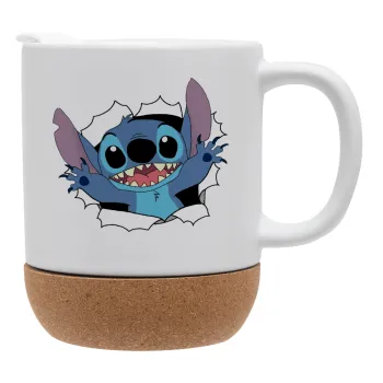 Stitch hello!!!, Κούπα, κεραμική με βάση φελού και καπάκι (ΜΑΤ), 330ml
