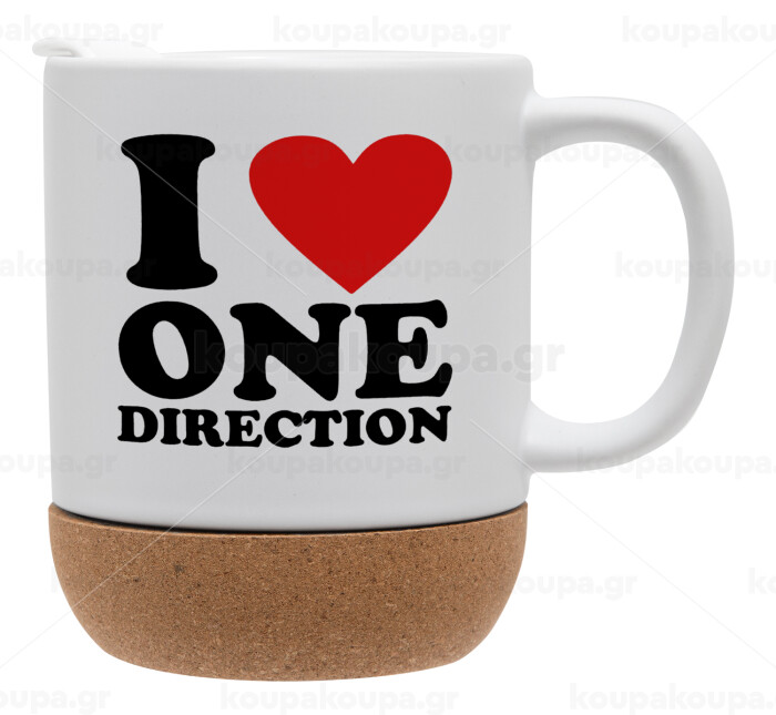 I Love, One Direction, Κούπα, κεραμική με βάση φελού και καπάκι (ΜΑΤ), 330ml