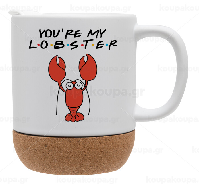 Friends you're my lobster, Κούπα, κεραμική με βάση φελού και καπάκι (ΜΑΤ), 330ml