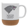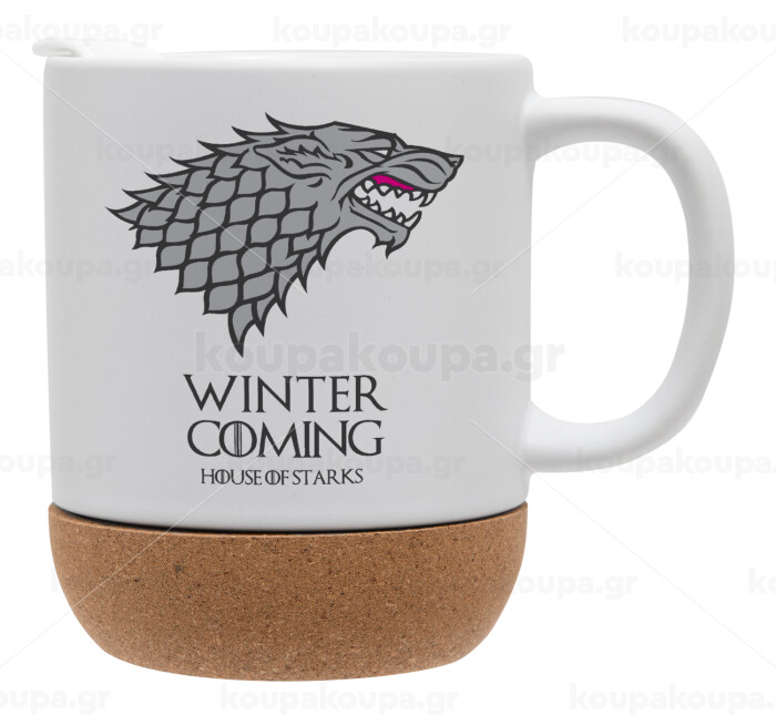 GOT House of Starks, winter coming, Κούπα, κεραμική με βάση φελού και καπάκι (ΜΑΤ), 330ml