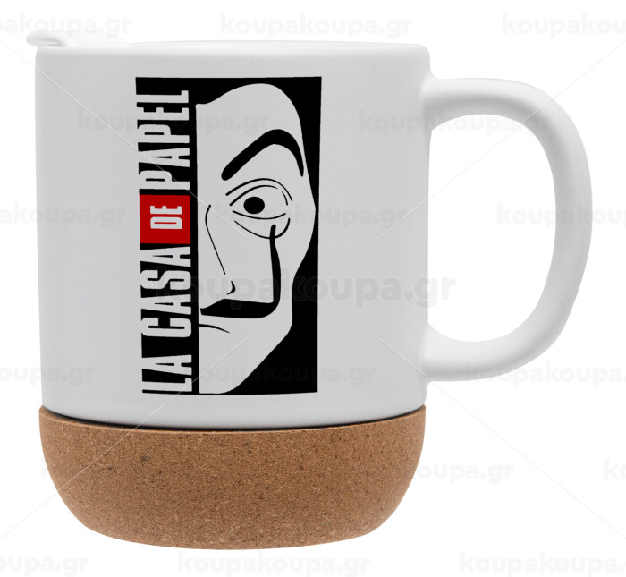 La casa de papel vertical, Κούπα, κεραμική με βάση φελού και καπάκι (ΜΑΤ), 330ml