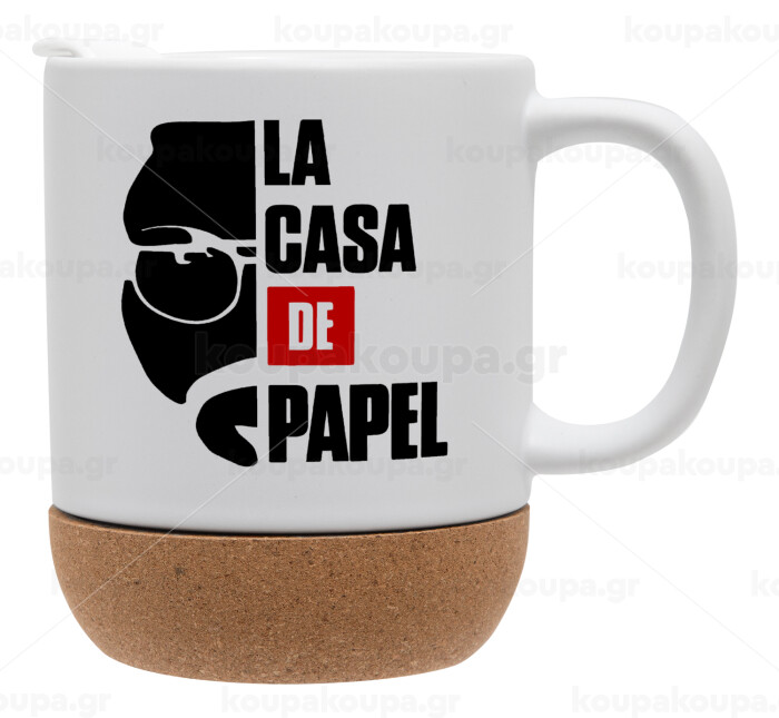 La casa de papel, Κούπα, κεραμική με βάση φελού και καπάκι (ΜΑΤ), 330ml