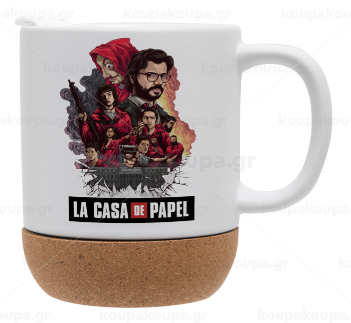 La casa de papel drawing cover, Κούπα, κεραμική με βάση φελού και καπάκι (ΜΑΤ), 330ml