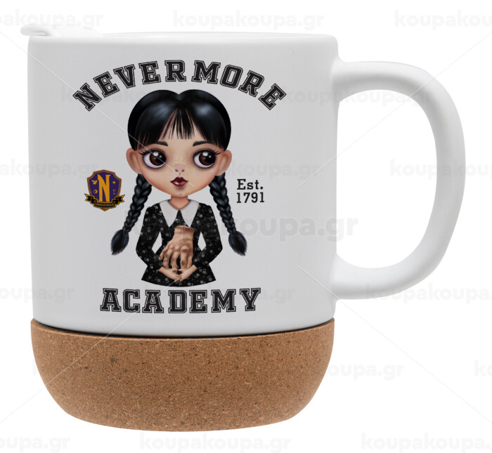 Wednesday Adams, nevermore, Κούπα, κεραμική με βάση φελού και καπάκι (ΜΑΤ), 330ml