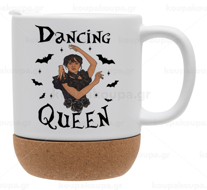 Wednesday Addams Dance, Κούπα, κεραμική με βάση φελού και καπάκι (ΜΑΤ), 330ml