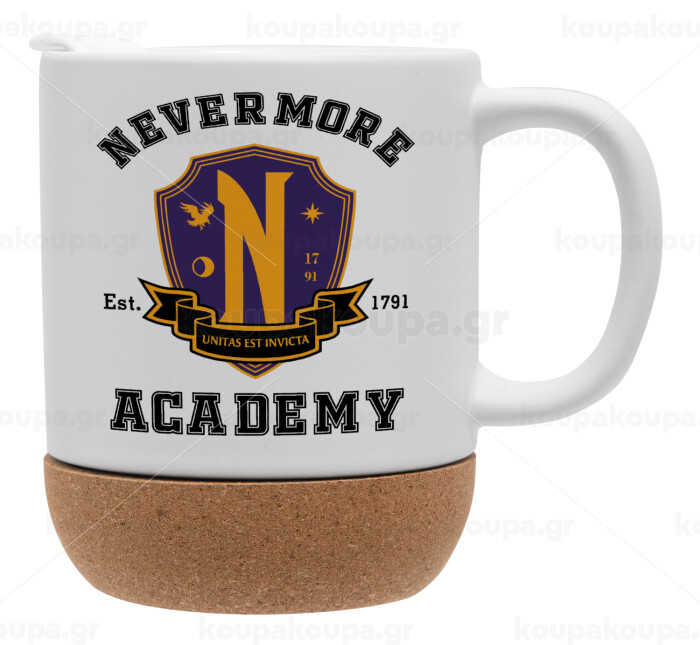 Wednesday Nevermore Academy University, Κούπα, κεραμική με βάση φελού και καπάκι (ΜΑΤ), 330ml