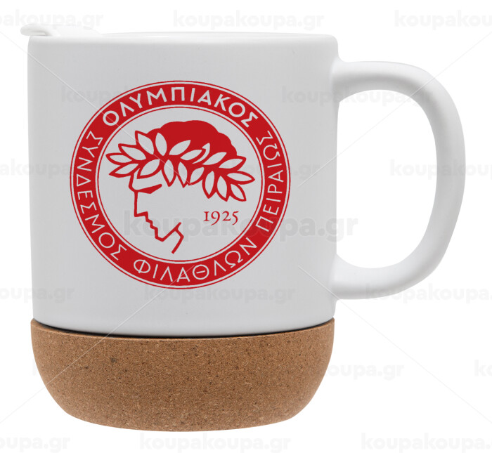 Ολυμπιακός, Κούπα, κεραμική με βάση φελού και καπάκι (ΜΑΤ), 330ml