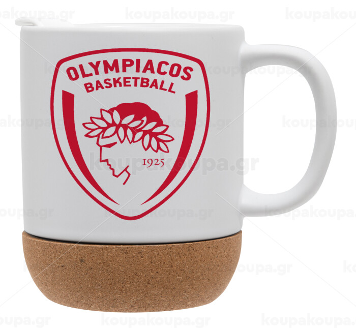 Olympiacos B.C., Κούπα, κεραμική με βάση φελού και καπάκι (ΜΑΤ), 330ml